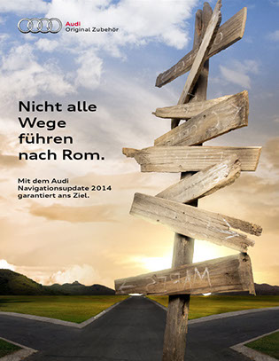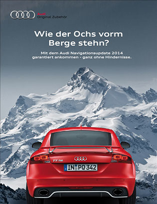 The Task of this project was to develop a campaign motif for Audi’s 2015 Navigation Update with a clear visual, a striking headline and a sub-line that is as short and convincing as possible.